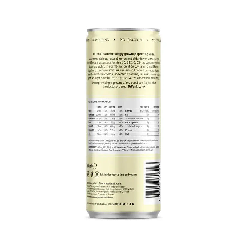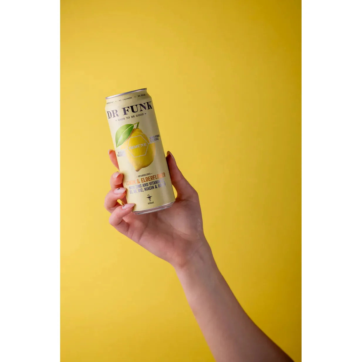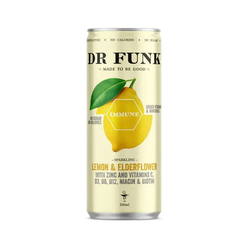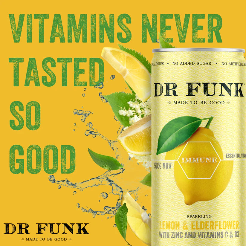 Dr Funk Immune Edition combines natural lemon and elderflower flavours with 7 essential nutrients to create a drink that's made to be good.