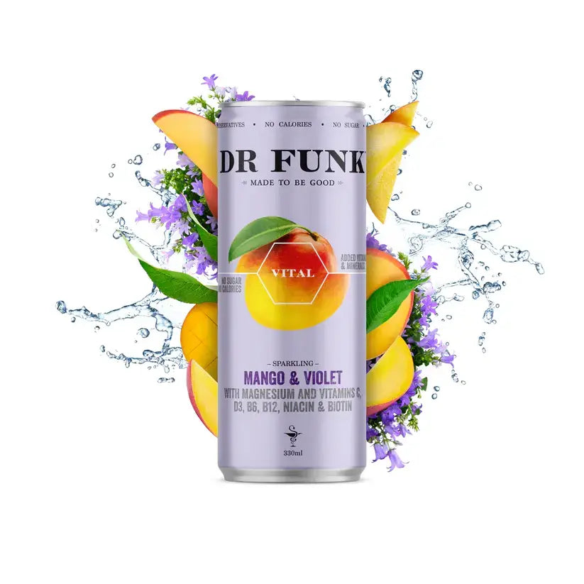 You deserve better a drink. Dr Funk Vital Edition combines natural mango with 7 essential nutrients including magnesium which regulates blood sugar and helps you sleep better to create a drink that's made to be good.