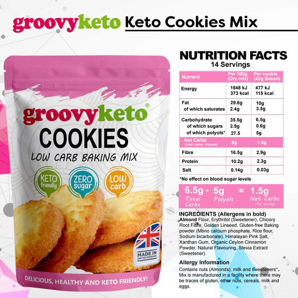 Introducing Groovy Keto. Indulge in the delectable flavours of freshly baked treats while staying true to your low-carb, high-fat lifestyle. Explore our exquisite range of keto baking mixes, featuring an array of options like keto cookie mix, keto cake mix, and more. Crafted with almond flour and sweetened using erythritol, our mixes are tailor-made for those committed to the ketogenic diet. Savour the mouth-watering goodness of cookies, cakes, and beyond, guilt-free. Experience the joy of indulgence without compromising your keto journey. Browse our selection now and relish in the delight of your beloved baked goods while staying in line with your ketogenic lifestyle.
