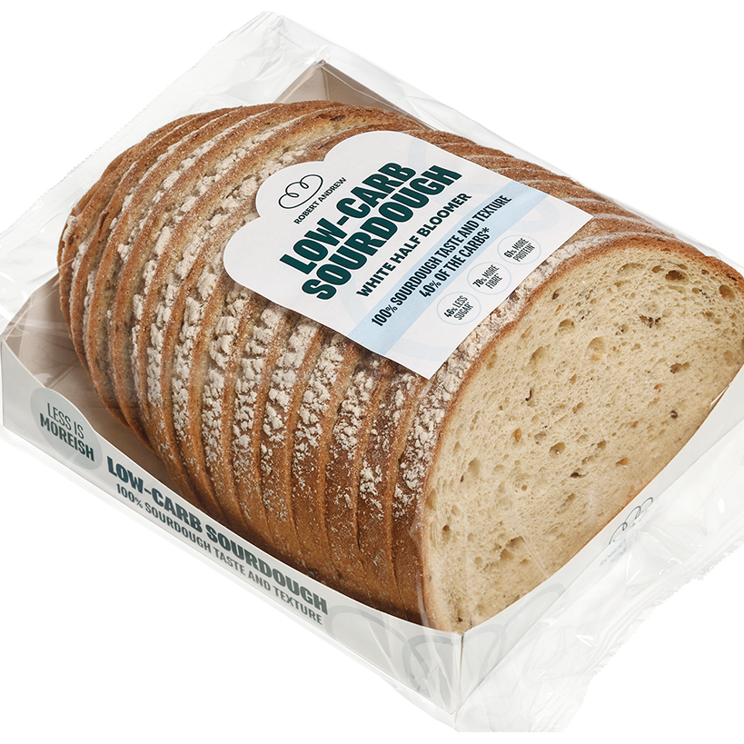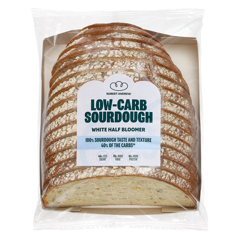 The Robert Andrew low-carb sourdough white bloomer delivers that delicious taste and texture, with less sugar, more fibre and boosted protein, compared to standard bread.
