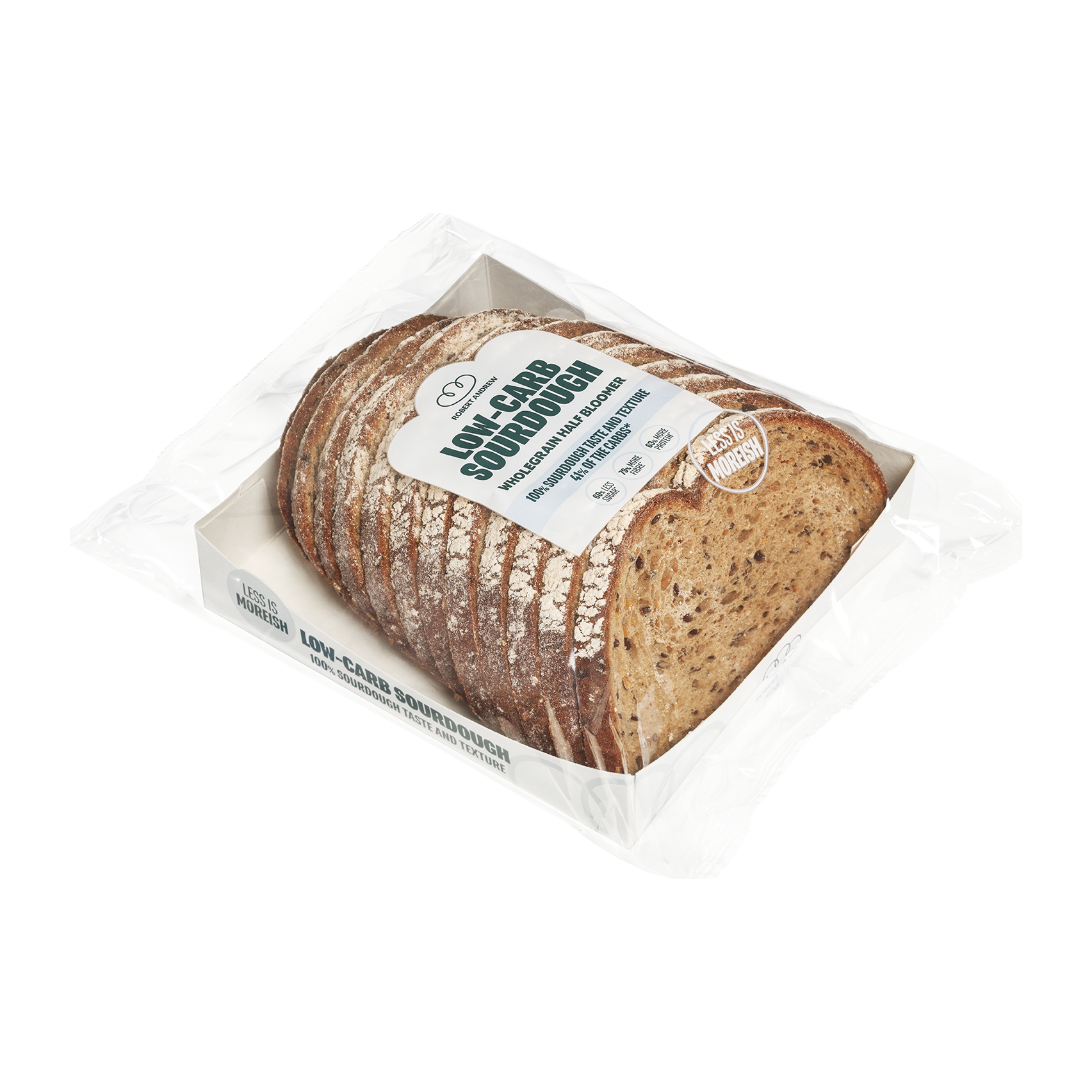 Freshly made in the UK with quality ingredients and artisan bakery expertise, our low-carb sourdough bloomer has less than half the sugar and carbs per slice than standard sourdough (41% of the carbs of white bread*) – and is boosted with plant protein.