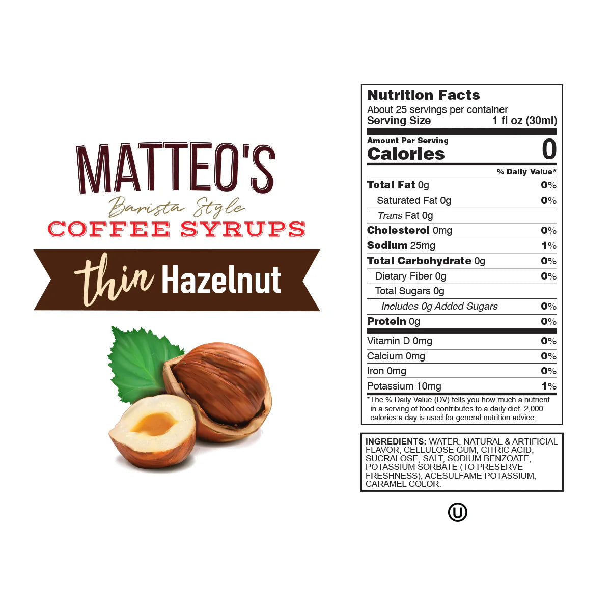 Matteo's Keto Coffee Syrup - Hazelnut 750ml